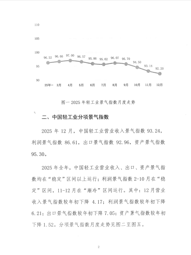 2025年轻工业景气指数公报